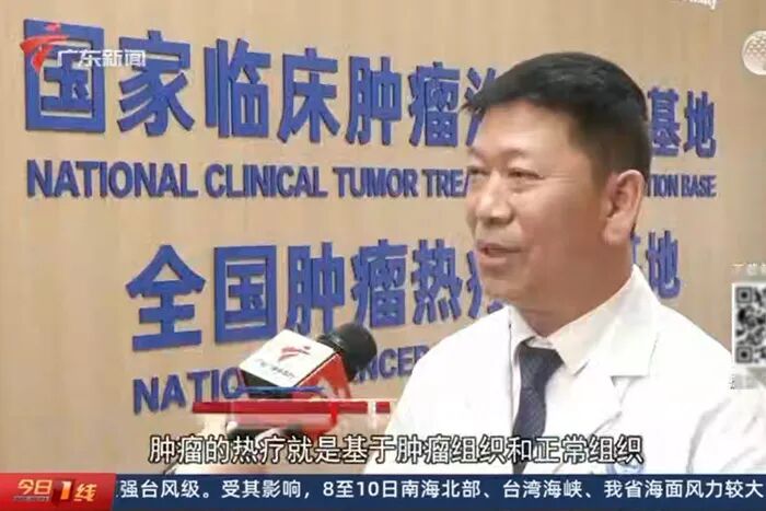 深圳华侨医院肿瘤科主任董文广教授采访时表示:“肿瘤的热疗,就是基于肿瘤组织和正常组织对温度的差异,肿瘤细胞不耐热,一般在39.5度以上,肿瘤细胞就不耐受,就会凋亡,而正常组织不受损害,我们就把肿瘤热疗这种绿色疗法和微创介入技术紧密的结合在一起,使病人最小的损伤,最小的副作用,最大的获益”。