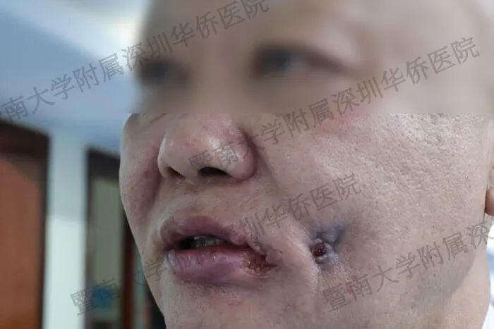 2023年11月,黑龙江,59岁的张先生感觉嘴里有一些疼痛,一直感觉是口腔溃疡,没有在意,直到2024年6月,左侧面颊内疼痛加剧,短短一个月,肿胀的比鸡蛋还大,嘴边烂的跟菜花一样,嘴角流脓血,每一天不停的流,用口罩也遮不住,在当地多家医院就诊,都说治不了,当地医生凭经验告诉张先生,应该是患上了口腔恶性肿瘤。