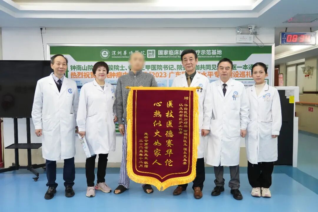 出院前,张先生特意定制了一面锦旗,上面写着“医技医德赛华佗·心热似火如家人”,亲手赠予窦永充教授团队。“第一次治疗让我看到希望,第二次治疗让我懂得敬畏。”他感慨道,“以后一定遵医嘱,按时复诊!”