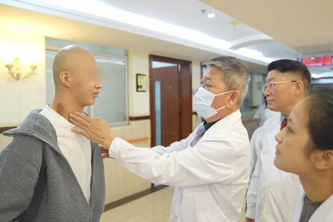 巨块肿物显著缩小,颈部轮廓恢复如初;